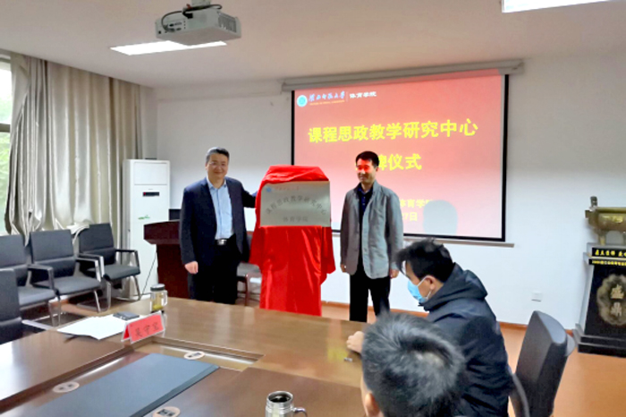 4月27日上午,体育学院在学院会议室举行“课程思政教学研究中心”揭牌仪式。 校党委常委、副校长李福华,校党委常委、教务处处长卓翔芝等出席会议。学院领导及学院“课程思政教学研究中心”成员参加会议。