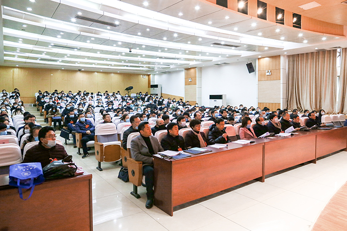校党委副书记、校长姚佐文以“创新思路,完善机制,凝聚合力 全面推动学校研究生教育更高质量发展”为题作大会报告。他回顾了学校研究生教育的发展历程,总结了学校研究生教育工作取得的成绩和经验,面临的挑战、存在的问题和不足,并提出了学校研究生教育发展的总体思路、发展目标和改革建设的目标任务。他指出,“十四五”期间,学校的研究生教育要以“立德树人、服务需求、提高质量、追求卓越”为工作主线。一是要加强党建和思想政治工作。坚持“四个服务”的高等教育办学方向,全面贯彻党的教育方针,把思想政治工作贯穿研究生教育教学全过程,实现全程育人、全方位育人。二是要转变学科建设模式。各相关部门与培养学院要建立联动机制,主动与企业行业之间搭建互通桥梁,围绕地方所需、地方所有,建立跨学科、跨学校、跨行业的学科建设模式;三是要优化学位授权点布局。深入推进一级学科学位授权点和专业学位授权点的动态调整机制;四是要完善导师岗位聘任制。深化导师管理的机制体制改革,强化导师岗位管理,明确导师职责,规范导师指导行为;五是要完善学术不端预防处置机制。加快完善集教育、防范、监督、惩治于一体的科学道德教育和学风建设体系;六是要健全质量保障体系。要在现有人才培养规格、课程体系建设、学位授予条件下,针对不同层次、不同类型、不同领域人才,构建涵盖学术质量标准、质量保障标准、质量信息标准等在内的研究生教育人才培养质量标准体系;七是要构建多元综合评价方式。构建以克服“五唯”为杠杆,引导学校、学科和研究生教育主动对接国家战略和我省经济发展需求,以“一流”为目标,争先创优的评价体系;八是要抓牢用好监督问责措施。学校将把学位授权点、学科建设的成效作为学院领导班子考核的重要内容。各相关部门要发挥协同育人作用,切实加强组织保障、思想保障和经费保障、政策保障,共同推进研究生教育改革发展;九要强化国际国内协同育人。积极探求“产学研”相结合,优化研究生联合培养的运行机制,广泛利用社会资源培养研究生;十要优化研究生课程设置和教学创新。高度重视研究生课程建设,充分发挥课程教学在研究生培养中的基础性作用。