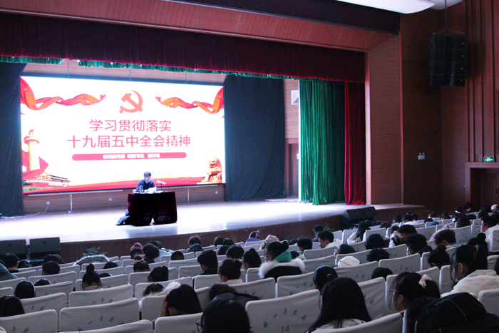 他强调指出党的十九届五中全会通过的《中共中央关于制定国民经济和社会发展第十四个五年规划和二〇三五年远景目标的建议》,指明了今后一个时期我国经济社会发展的指导方针、主要目标、重点任务、重大举措,对于动员和激励各级党组织和广大干部群众抓住用好重要战略机遇期,加快建设绿色开放幸福美好新安徽,具有深远的意义。他紧扣十九届五中全会精神,从把握新发展阶段、落实新目标要求、贯彻新发展理念、构建新发展格局、履行新使命担当等方面深入阐释了十九届五中全会的新思想新观点新论断,深入分析了我国和安徽省发展面临的新形势新任务,与广大师生共同展望了十九届五中全会所描绘国家和安徽发展的宏伟蓝图。报告会内容深入浅出,案例生动翔实,真正推动会议精神入脑入心。