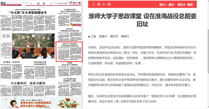 【淮北日报】:淮师大学子思政课堂设在淮海战役总前委旧址