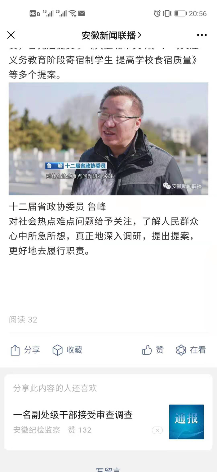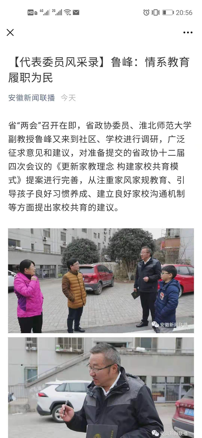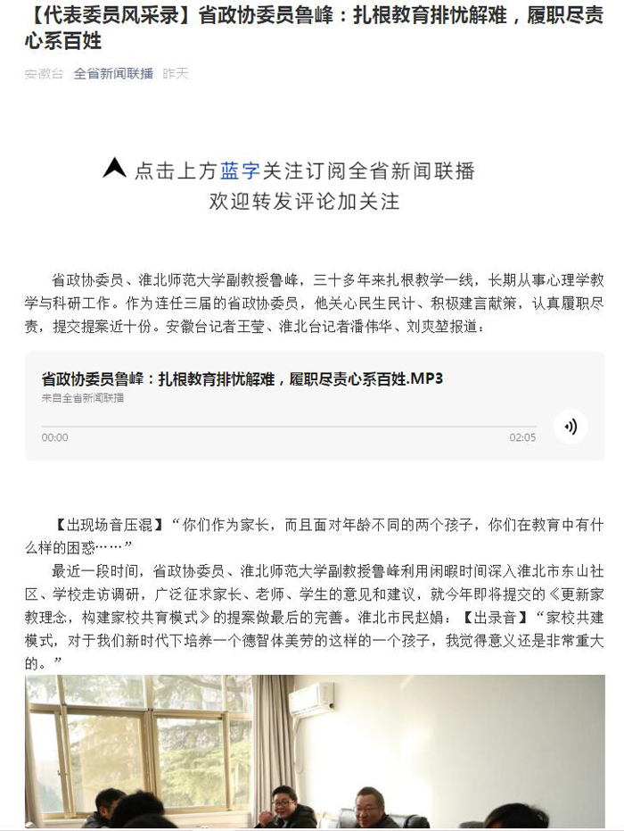 《安徽新闻联播》及安徽广播《全省新闻联播》报道我校省政协委员鲁峰精心准备提案,充分履职尽责