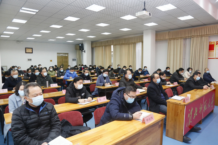 校长姚佐文总结了学校2020年度各项工作,部署了学校2021年重点工作。他指出,各部门克服新冠肺炎疫情影响,聚焦2020年学校重点工作,扎实推进学校内涵式发展,各项工作取得明显成效。一是贯彻落实中央省委部署,在思想政治建设、干部队伍建设、党风廉政建设等方面不断规范化、日常化、精细化。二是坚持立德树人根本任务,人才培养质量不断提高。三是聚焦学校重点目标任务,在学科建设发展、人才队伍建设、服务地方等方面的内涵发展不断提升。四是依法治校工作全面推进,民生保障水平不断提高。姚佐文对2021年10项重点工作进行了部署,并强调要在做好疫情防控工作的同时,继续巩固和发展学校积极向上的良好局面,凝心聚力、真抓实干,全面推动学校各项事业不断发展。