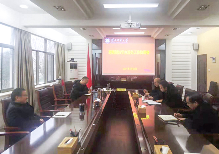 1月25日下午,学校在相山校区三楼会议室召开2021年寒假留校学生服务工作协调会。校党委副书记朱德顺主持会议并讲话。