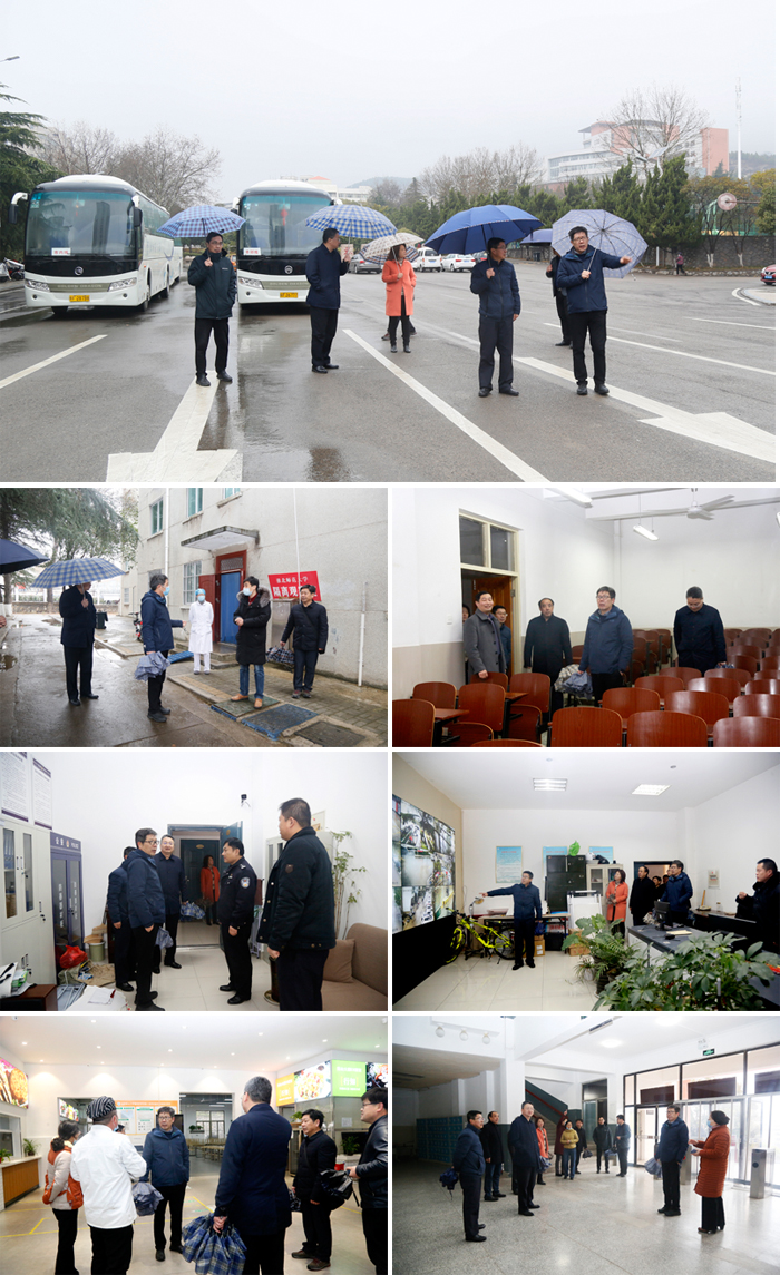 校领导一行走访了学校大门出入口、警务室、监控室、医院、临时医学观察点、图书馆、教室、学生食堂和宿舍等校园重点场所,认真检查学校疫情防控、安全保卫、后勤保障、校园管理、教学设施等方面的开学准备工作。