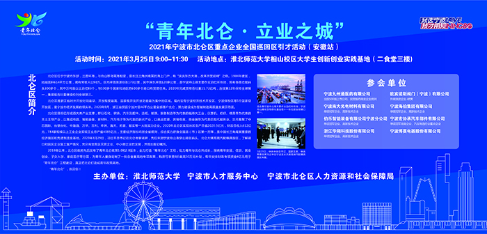 3月25日,宁波市北仑区2021年“十城百校”全国巡回引才活动招聘会在我校相山校区大学生创新创业实践基地顺利举行。校党委副书记朱德顺出席活动,学生就业指导中心负责人陪同参加。