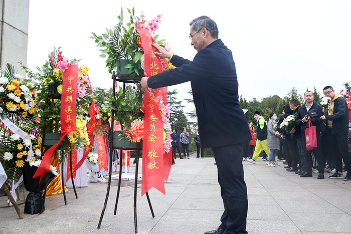 为更好地缅怀革命英烈、传承红色基因,把开展党史学习教育同弘扬优秀传统文化结合起来,4月2日,校党委组织校领导、校党委委员、校纪委委员和各基层党委(党总支)书记赴淮海战役双堆集烈士陵园开展“清明祭英烈”活动,缅怀革命先烈,祭奠不朽英魂。