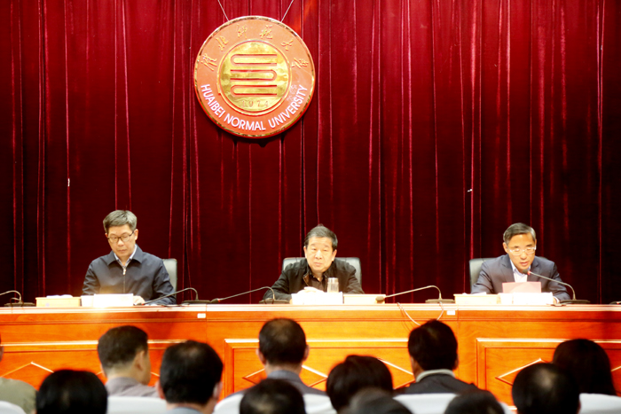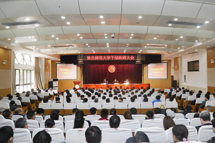 4月12日,学校在文南111报告厅召开干部教师大会。考核组全体成员,学校领导班子成员,机关部门正副职、学院及二级机构党政正职(含主持工作的副职),省级以上“两代表一委员”、民主党派市级以上主委,学校教代会执委,正高职称人员,学生代表等参加会议。校党委书记陈士夫主持会议。