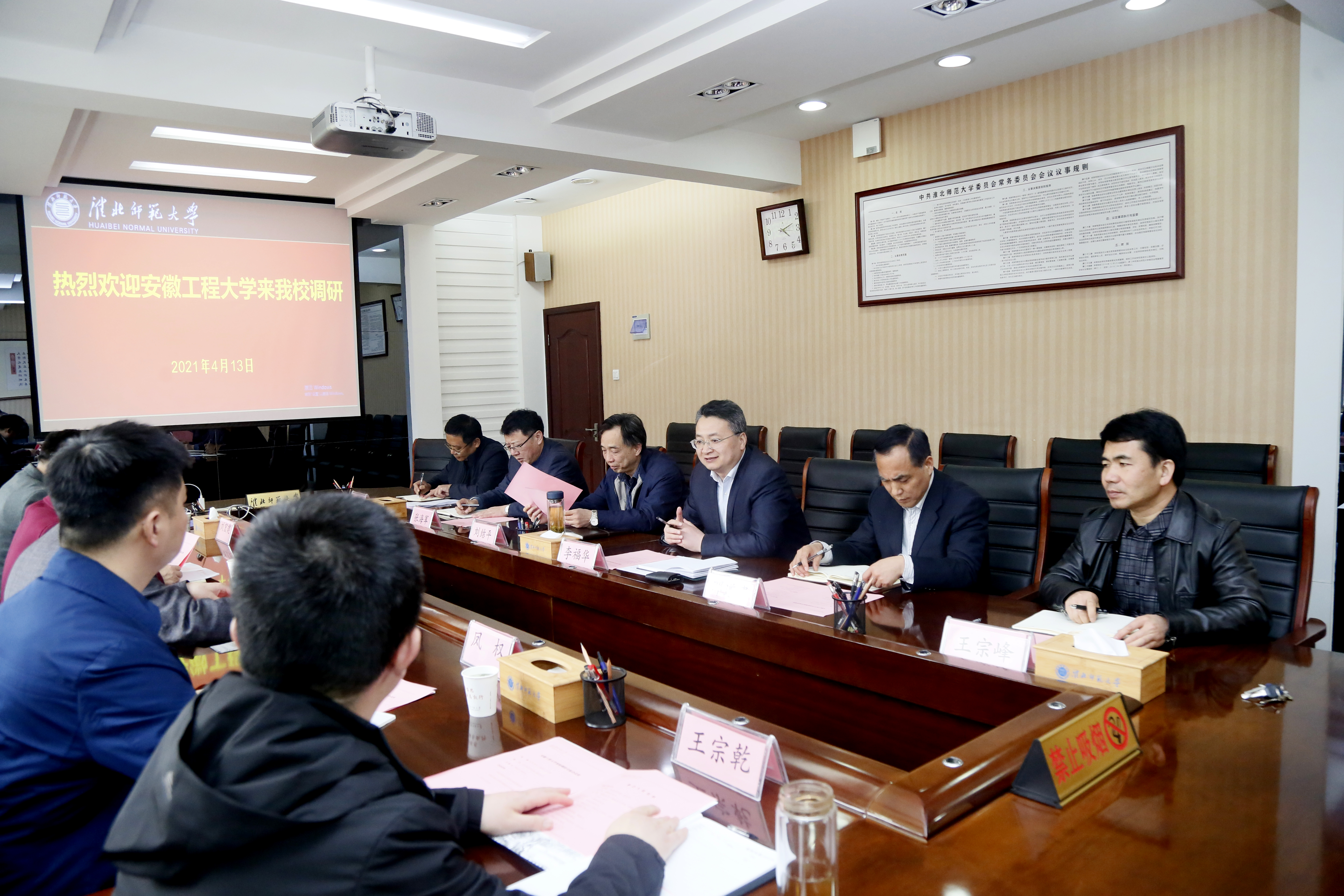 4月13日,安徽工程大学校党委常委、副校长费为银等一行6人来校就学科建设、研究生教育与管理、科学研究及师资队伍建设等工作进行调研交流。副校长李福华在行政楼三楼会议室主持交流座谈会。
