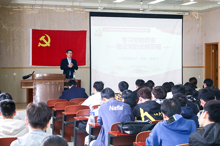 姚佐文以“学习党的历史,铭记党的光辉历程”为主题,以史实阐释中国共产党的精神谱系,全面回顾了中国共产党建党以来一百年波澜壮阔的历史。姚佐文指出,中国共产党始终紧紧依靠和紧密团结全国各族人民,不懈努力,勤勉奋斗,为民族独立、人民解放和国家富强、人民幸福付出了最大牺牲,做出了最大贡献,成就了最伟大的事业,实现了最辉煌历史飞跃。中国共产党在历史长河中铸就和锤炼出来“为中国人民谋幸福,为中华民族谋复兴”的立党初心。站在两个一百年交汇点,同学们要铭记党的光辉历程,不忘初心、砥砺前行,以实际行动做到“学史明理、学史增信、学史崇德、学史力行”。