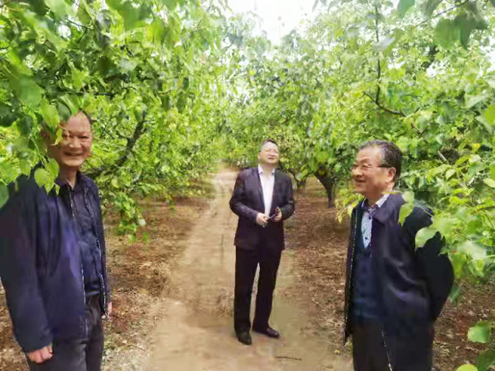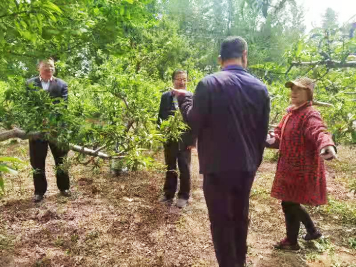 座谈会后,朱德顺、李福华一行下到田间地头,现场查看果树的生长情况,并与果农们交流果园的日常管理和病虫害的生物防治措施。