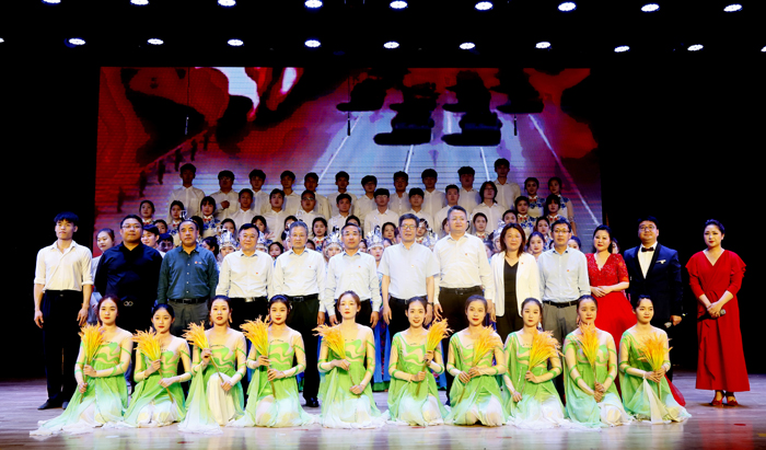 他着重强调四点:一是用高雅艺术的方式去重温党的百年辉煌历史,点燃全体淮师大党员对党的无限崇敬激情,更加坚定对马克思主义的信仰,更加坚定对共产主义远大理想的信仰,更加坚定对中国共产党领导的信任;二是用高雅艺术的方式去讴歌党的百年光辉成就,点燃全体淮师大党员对党的无限崇敬激情,更加增强“四个意识”、坚定“四个自信”、做到“两个维护”;三是用高雅艺术的方式去赞美党的百年奋斗历程,点燃全体淮师大党员对党的无限崇敬激情,更加坚定赓续共产党人的精神血脉,更加坚定传承共产党人的红色基因,更加坚定传承发扬好党的好传统好作风;四是用高雅艺术的方式去展现党的百年奋进风采,点燃全体淮师大党员对党的无限崇敬激情,更加坚定不忘初心、牢记使命,立党为公,执政为民,更加坚定思想建党、理论强党,勇于革命、敢于斗争,更加坚定改革创新、再续华章,勇毅前行、再立新功。