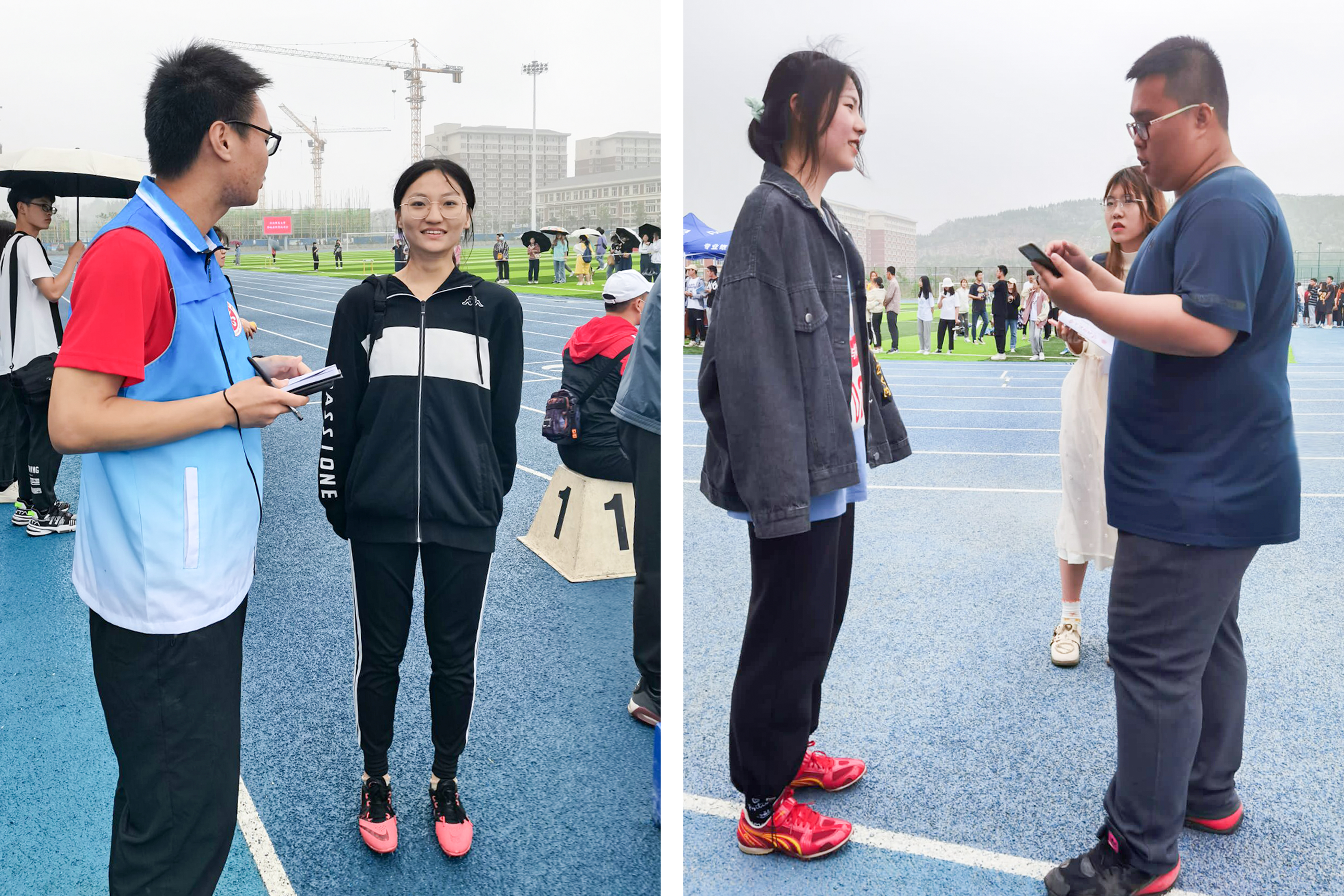 天空细雨连绵,但青年学子激情无限。运动员们在赛场上龙腾虎跃,奋力争先。他们努力拼搏,超越自我,传承着更强、更高、更快的体育精神;后勤人员将热情与无私洋溢在运动会的每一个角落。他们撑起伞,在操场上绽放起阳光之花。邱晓磊老师在采访中表示,第一次看到新老校区同学们联合在一起,精神面貌比以前更好。这次的志愿者比较多。他们的服务贴心。体育学院的学生裁判也认真负责。