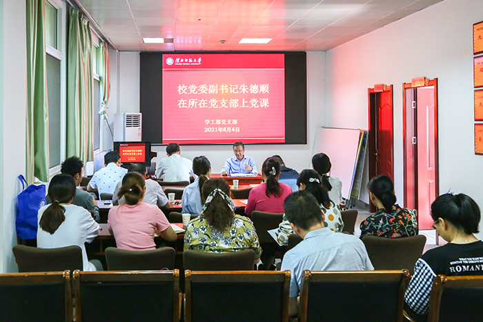 6月4日上午,校党委副书记朱德顺到所在党支部—学工部党支部做“学史增信筑牢信仰之基”专题党课。党支部全体党员和教职工聆听党课。