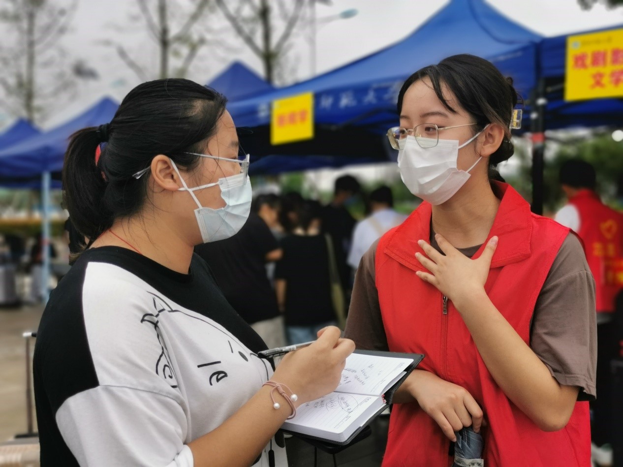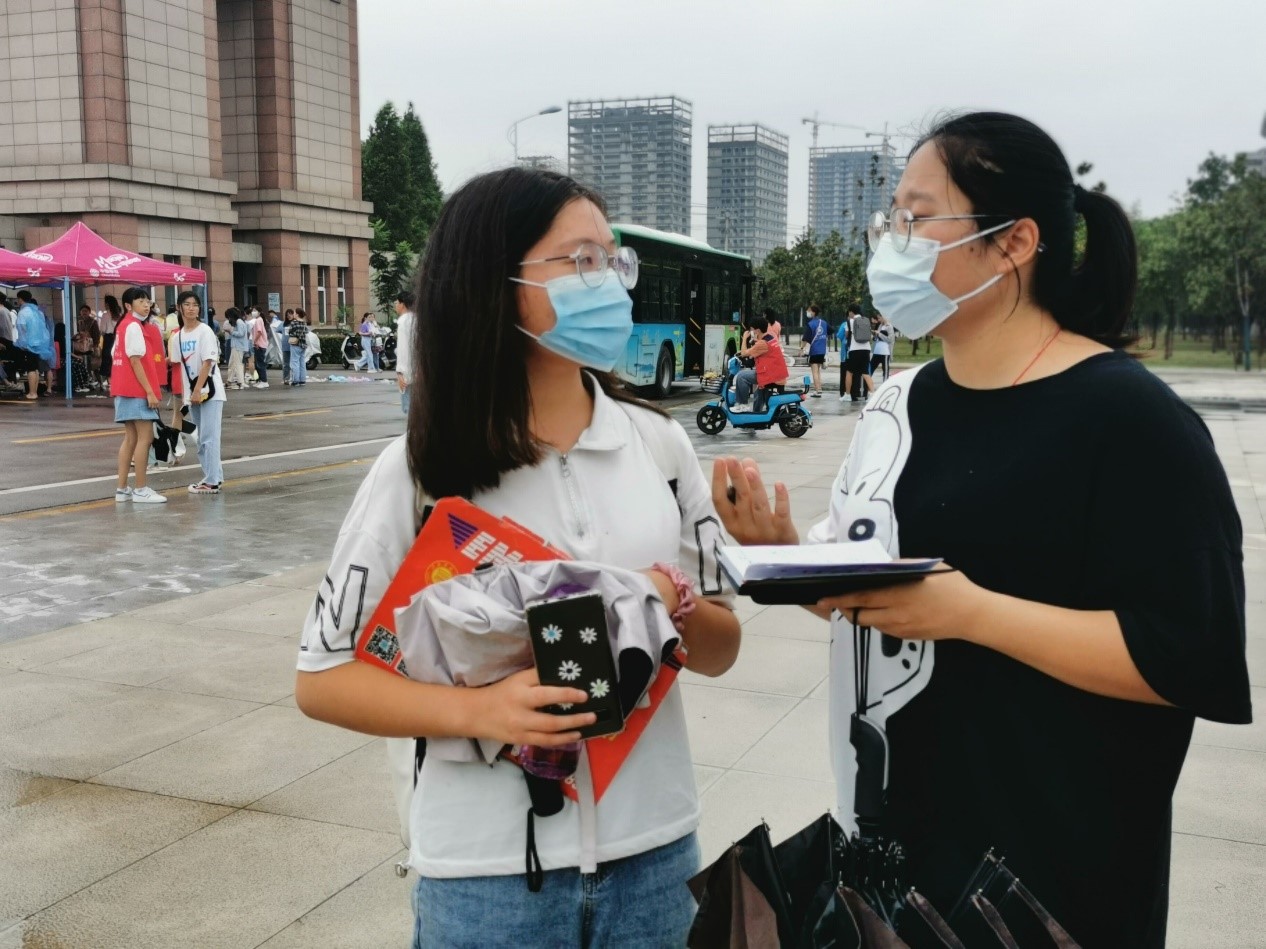 新生家长沈女士说:“雨虽然下得很大,但学校的疫情防控工作却很细致,志愿者也很热情,帮忙搬运行李指引路线真得太辛苦他们了。”文学院2020级汉语言文学师范专业的丁媛媛同学表示,雨天增加了迎新的困难,却没有减弱内心的开心与满足,她表示没有后悔参加此次迎新活动。
