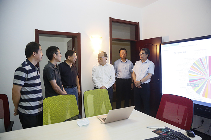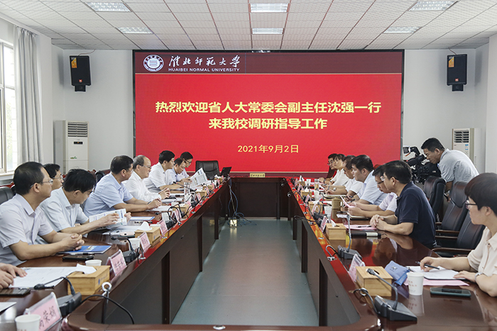 在校长姚佐文、副校长余敏辉陪同下,沈强实地考察了位于相山校区的教育部重点实验室、图书馆、安徽省高校管理大数据研究中心、安徽文献整理与研究中心(安徽优秀传统文化研究中心),详细了解学校学科建设和实验室建设,以及图书馆藏特色、高校智库和人文社科基地建设等情况。在随后召开的座谈会上,余敏辉对沈强一行的到来表示热烈欢迎,并简要介绍了我校发展历程和目前基本情况;相关职能部门负责人详实汇报了学校多措并举助力决胜脱贫攻坚,为乡村振兴提供科技支撑和智力支持的基本做法、成效和下一步打算。