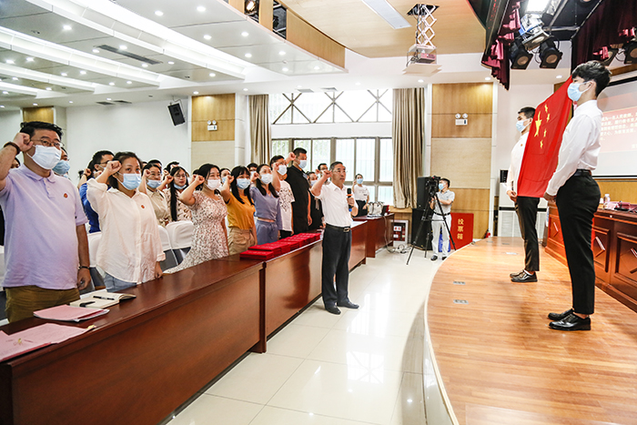表彰大会上,陈士夫还带领2021年新进教师进行了入职宣誓。