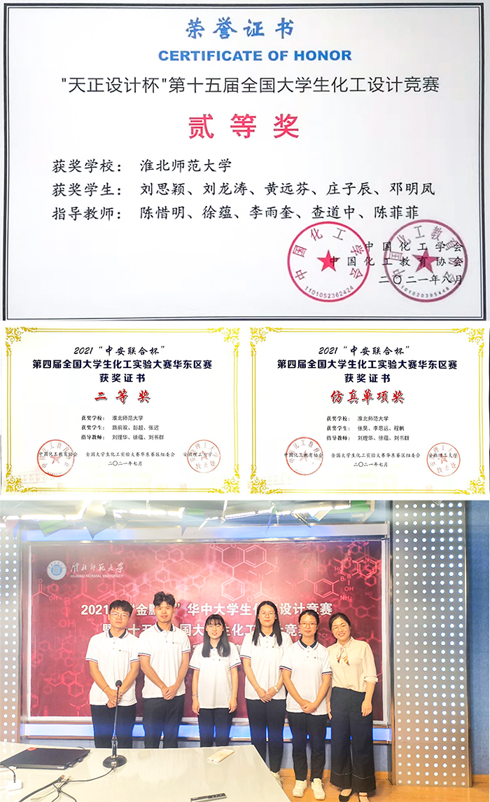 近日,由中国化工学会、中国化工教育协会联合主办的2021年“天正设计杯”全国大学生化工设计竞赛落下帷幕,我校学子荣获全国二等奖1项、参赛奖2项。同期,学校荣获全国化工实验大赛华东赛区二等奖1项、仿真单项奖1项。