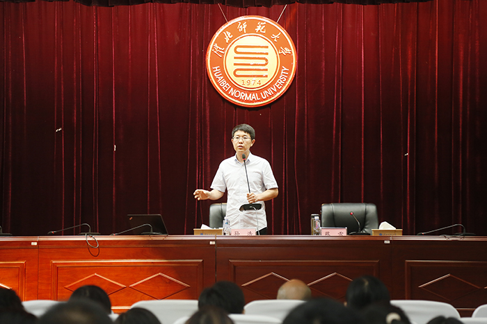 聆听楷模事迹,感受榜样力量。9月25日下午,学校在文南111举办“全国教书育人楷模”孙浩老师先进事迹报告会。报告会由校党委常委、副校长蔡雷主持。学校全体专兼职辅导员、2021年新进教师、师范类专业学生代表共200余人聆听了报告。