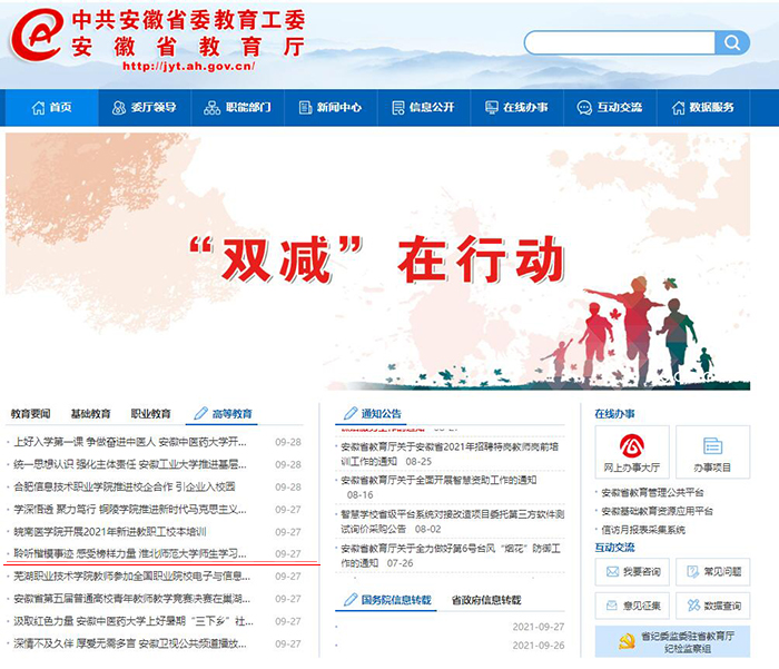链接地址:http://jyt.ah.gov.cn/xwzx/gdjy/40472566.html 安徽教育网