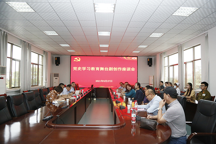 指导组一行观看了我校大学生党史学习教育舞台剧创作展演,并与指导教师和创作演出人员进行了座谈交流。在座谈会上,陈平高度评价了舞台剧的创作和演出,他指出,淮北师范大学切实贯彻立德树人根本任务,在开展以党史教育为重点的“四史”教育融入思政课实践教学活动中,践行“教书人为本,育人德为先”教育理念,以舞台剧创作展演为形式,积极创新大学生党史学习教育,在加强和改进青年学生思想政治教育工作中做出有益探索。