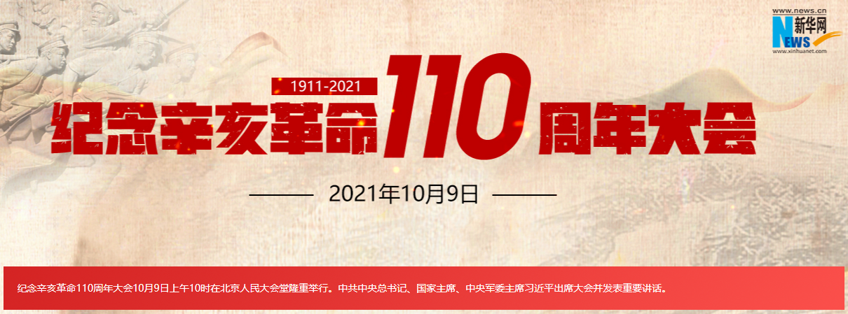 纪念辛亥革命110周年大会10月9日上午10时在北京人民大会堂隆重举行。中共中央总书记、国家主席、中央军委主席习近平出席大会并发表重要讲话。中央广播电视总台、新华网对大会进行报道。