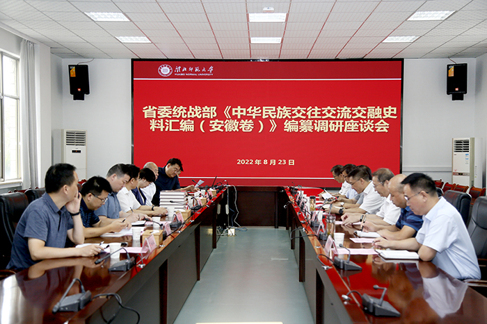 8月23日上午,省委统战部副部长、省民委(宗教局)主任(局长)陆友勤一行5人来我校调研《中华民族交往交流交融史料汇编(安徽卷)》编纂工作,并看望牛继清、雒有仓两位教授。校党委书记张立驰主持调研座谈会,淮北市委常委、统战部长顾汕竹,淮北市委统战部以及学校党委统战部、党委宣传部、历史文化旅游学院等相关单位负责人参加调研座谈会。