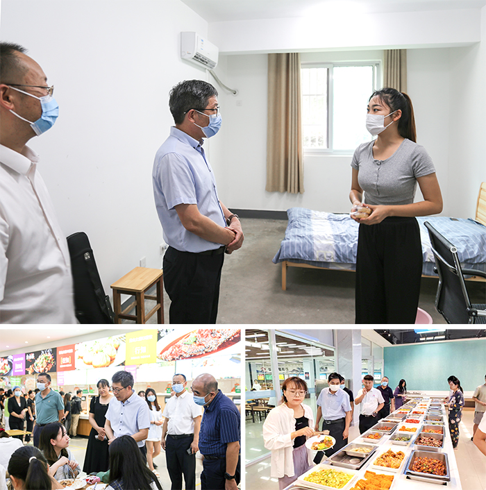 姚佐文、蔡雷看望了在健康监测点留观的学生,仔细询问他们生活和网络学习情况,并为他们送上节日祝福。在学生食堂,姚佐文、蔡雷检查了食堂开展中秋节优惠服务活动情况,并和同学们一起共度中秋佳节。