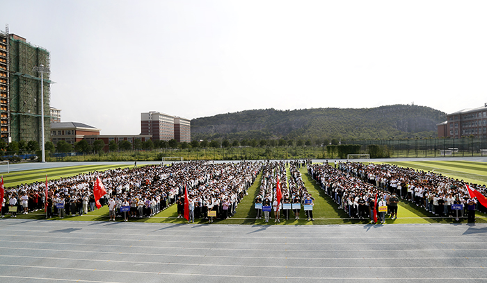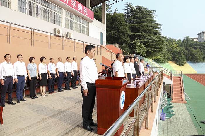 开学典礼在《中华人民共和国国歌》声中拉开帷幕。