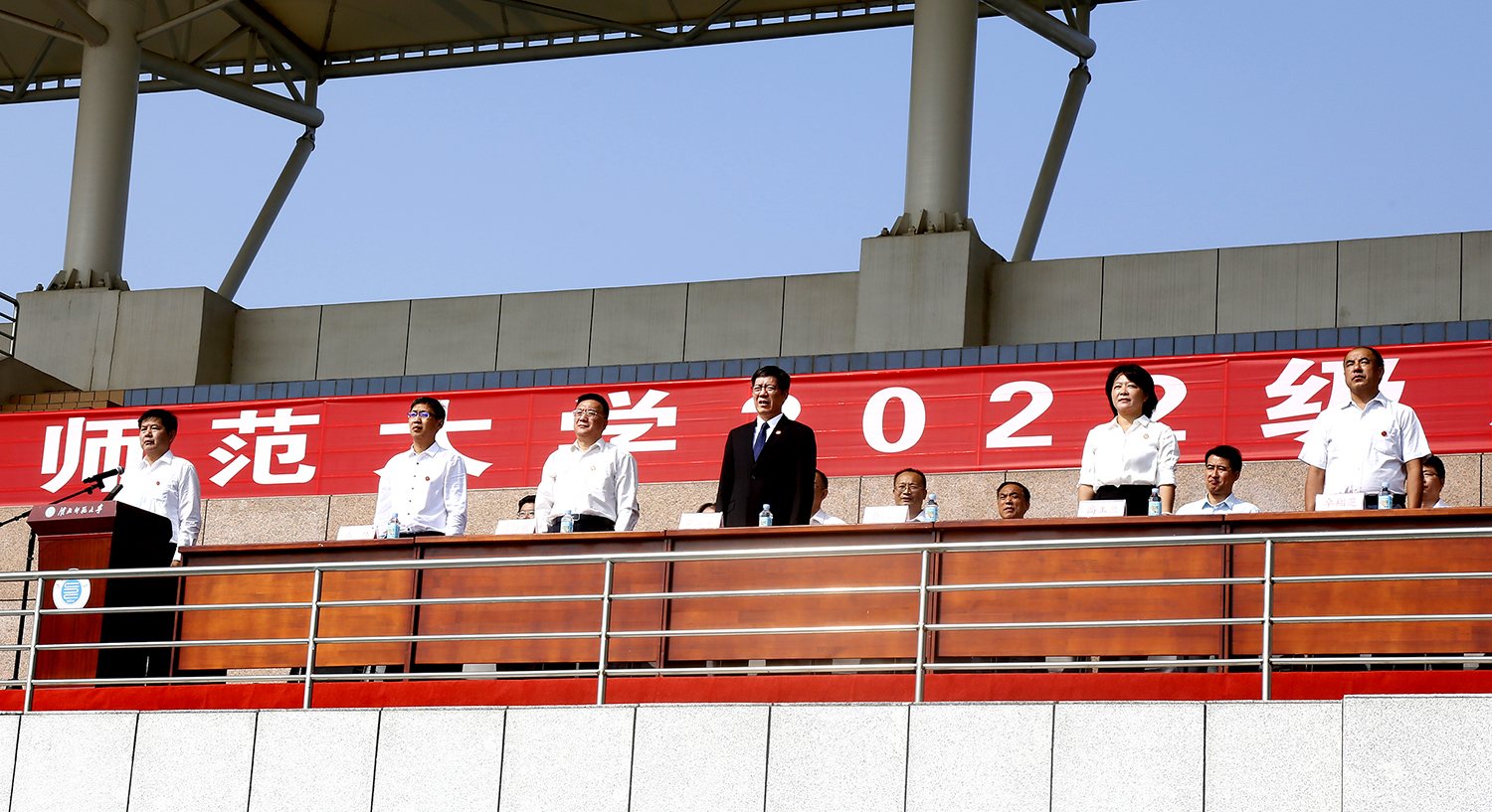 教师代表化学与材料科学学院苗涛教授、计算机科学与技术学院石莉教授,老生代表体育学院2021级本科生卢文洁同学、法学院2021级研究生姜楠同学,新生代表生命科学学院2022级研究生刘畅同学、美术学院2022级本科生刘文静同学分别在典礼上发言,鼓励2022级新同学不负青春韶华,不负时代重托,在艰苦奋斗、追求卓越的道路上用知识和智慧照亮前程,用拼搏和奋斗谱写未来。