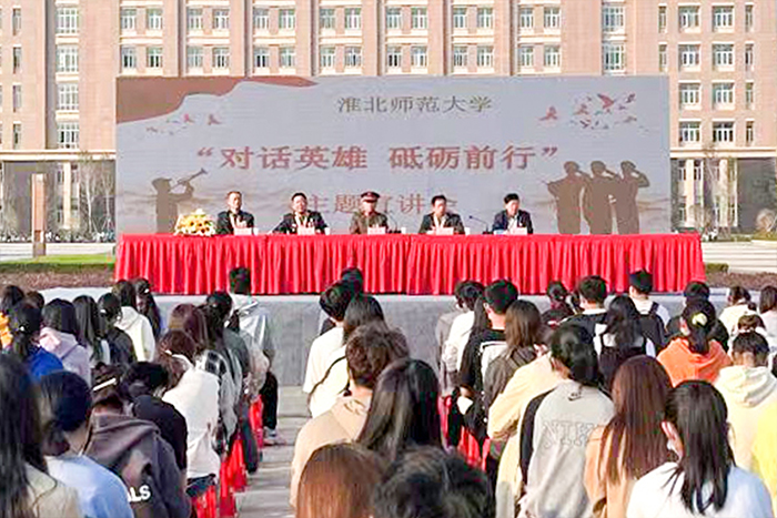 为喜迎二十大,奋进新征程,引导和激励广大青年大力弘扬爱国主义精神,10月14日,校党委宣传部、学工处、校团委在相山校区文南111报告厅、滨湖校区明德广场举办“对话英雄砥砺前行”主题宣讲活动。校党委常委、副校长翟胜宝参加宣讲活动,校党委常委、宣传部部长高玉兰主持。