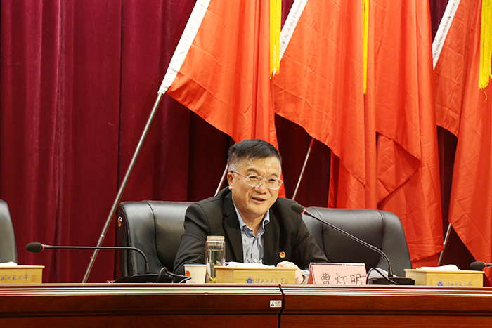 开班仪式后,曹灯明以《坚定不移听党话、跟党走,立志做有理想、敢担当、能吃苦、肯奋斗的新时代好青年》为题讲授培训班第一课。曹灯明带领同学们学习了习近平总书记关于青年工作的重要思想特别是习近平总书记在党的二十大报告中对青年人的寄语,通过各个时代和各条战线上的优秀共产党员的先进事迹鼓励和激励同学们,并要求大家把树立正确的理想、坚定的信念作为立身之本,努力成长为党、国家和人民所期盼的有志青年;把正确的道德认知、自觉的道德养成、积极的道德实践紧密结合起来,自觉树立和践行社会主义核心价值观;在学习中增长知识、锤炼品格,在工作中增长才干、练就本领,以真才实学服务人民,以创新创造贡献国家;敢于担当,勇于奋斗,踔厉奋发,勇毅前进,坚定不移听党话、跟党走,立大志、明大德、成大才、担大任,努力成为有理想、敢担当、能吃苦、肯奋斗的新时代好青年,让青春在全面建设社会主义现代化国家的火热实践中绽放绚丽之花。
