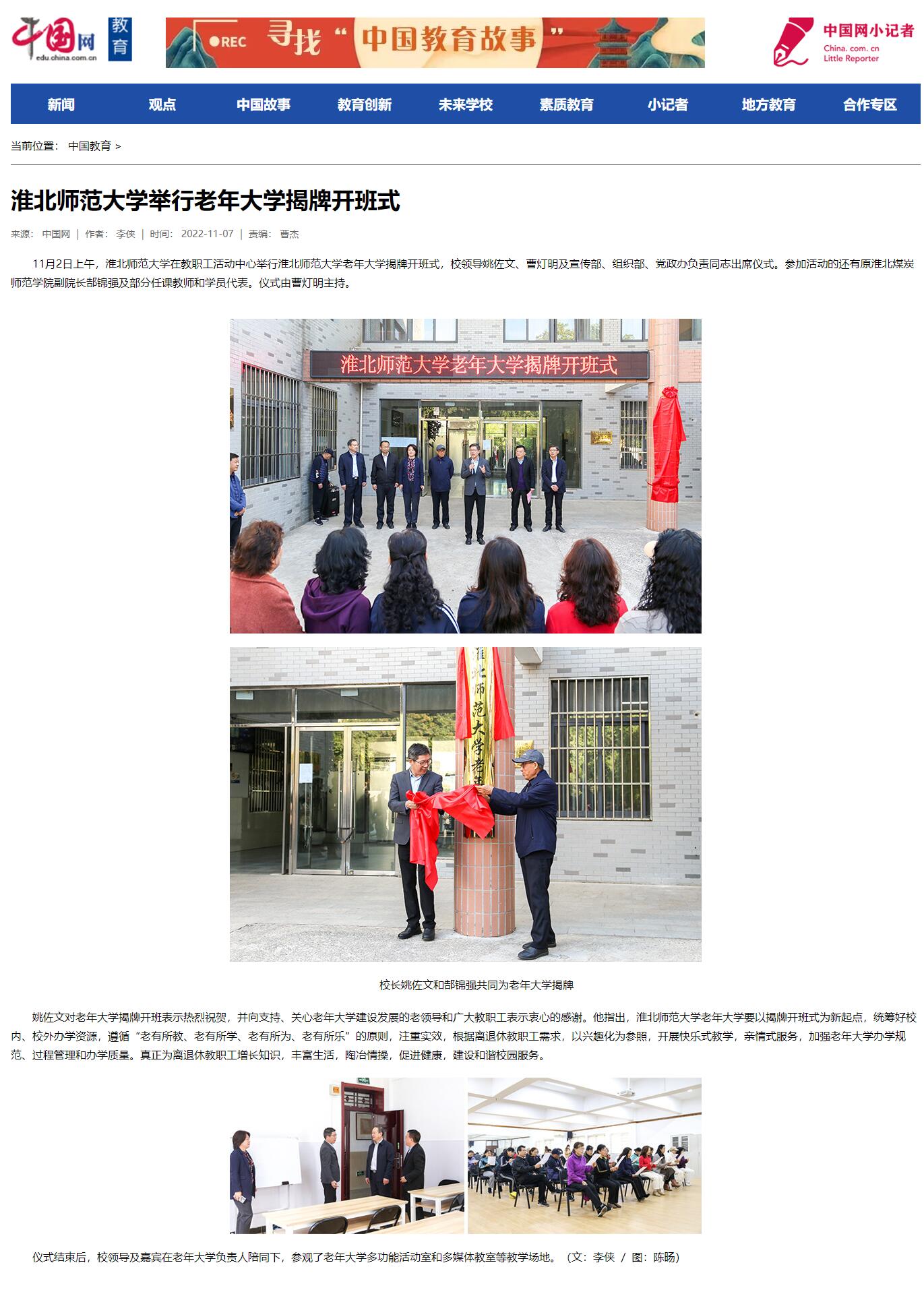 【中国网】淮北师范大学举行老年大学揭牌开班式 来源:党委宣传部 发布时间:2022-11-07 16:07:37 浏览次数: 次 【字体:小 大】 11月7日,中国网报道我校举行老年大学揭牌开班式。链接地址:http://edu.china.com.cn/2022-11/07/content_78505514.htm 分享到: 【打印正文】