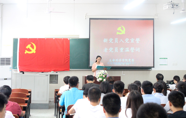 为庆祝建党95周年,为党组织输入新鲜血液,生命科学学院党委学生党支部于2016年6月24日在文南206举行了新党员入党宣誓、老党员重温誓词仪式。学院党委领导、学生党支部书记及全体学生党员参加了会议。