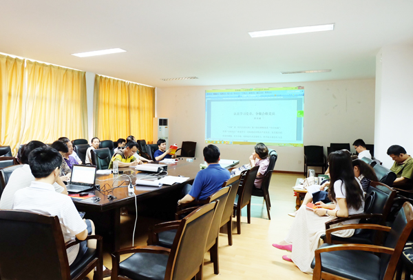 6月22日下午,文学院教工党支部在文学院会议室组织开展了专题党课学习活动。文学院党委委员、院长周有斌为全体教职工党员上了一堂题为“认真学党章,争做合格党员”的党课。课上,周有斌院长引经据典,阐释了学习党章的重要性。他结合个人研读党章党规的学习心得,联系其从教经历,就如何成为一名好老师表达了自己的看法。他认为作为一名优秀的党员教师应具有以下三个特质:一是认真学习党章,学习习近平总书记的系列讲话,把握其精神实质,理解其意义;二是师德高尚,关心爱护学生,尊重学生,做学生的知心朋友;三是积极进行科学研究,了解本学科发展动态,并把最新的科研成果融入到教学中。