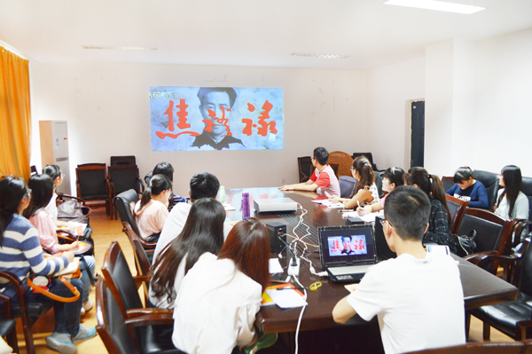 2016年5月24日下午,为深入贯彻落实党的“两学一做”学习教育活动,学习优秀共产党员的模范事迹,文学院学生第一党支部全体党员在文学院会议室共同观看了《焦裕禄》。
