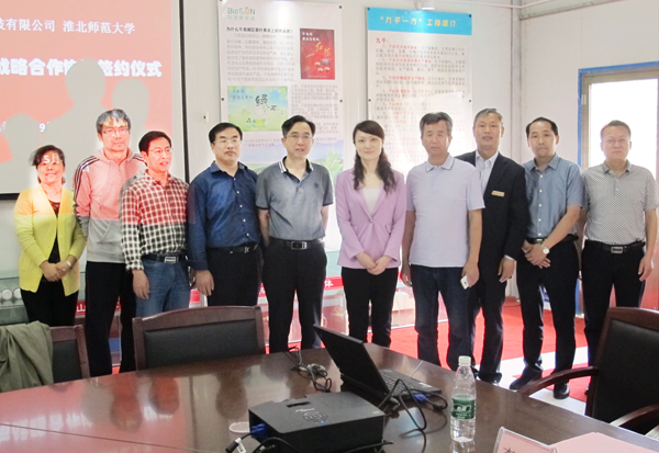 5月29日上午,生命科学学院与淮北百晟新农业科技有限公司在该公司会议室举行校企合作签约仪式,百晟新农业科技有限公司董事长李宗强、总经理李奎群等,淮北市相山区副区长邵青,淮北师范大学教务处处长刘结平,生命科学学院院长李峰、生命科学学院党委副书记郭传友等出席签约仪式。签约仪式由百晟新农业科技有限公司办公室主任张素侠主持。