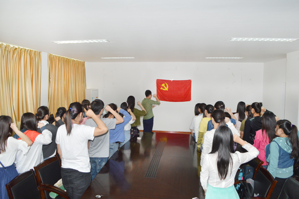 面对着鲜艳的党旗,党员们郑重承诺:刻苦学习,遵纪守法,服务社会,报效祖国!永远爱党,永不叛党!随后,在思源广场飘扬的五星红旗下,支部进行了主题签名活动。在印有“亮身份、作承诺、当先锋、树形象”的条幅上签上自己姓名的那一刻,大家纷纷表示,将会以更加饱满的热情和更加昂扬的姿态,带头承诺践诺,坚持“四讲四有”标准,踏踏实实做好各项工作,做合格党员。