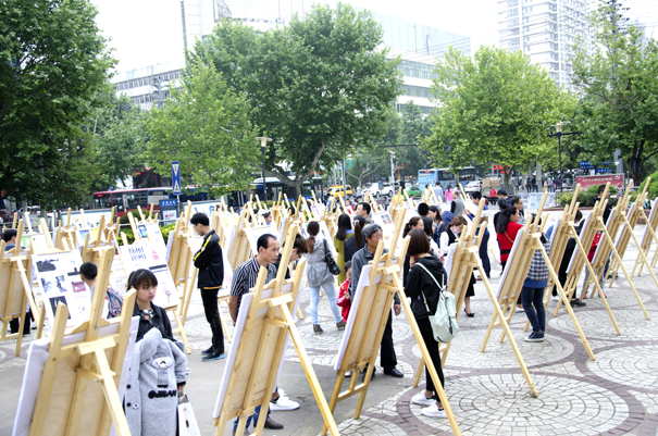 5月14日,文学院组织广告学专业学生在市两宫广场举办第二届公益广告优秀作品暨创·益作品展。校党委宣传部部长王向阳、文学院新闻系主任谢天勇等老师应邀到现场观展。