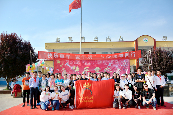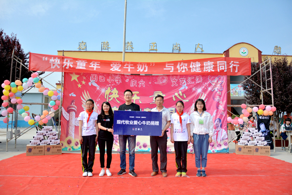 5月18日,淮北师范大学薪火义务支教社联合现代牧业(集团)有限公司、北京爱牛奶文化有限公司共同举办了“欢乐童年 牛奶为伴 健康同行”牛奶捐赠活动。此次活动由北京爱牛奶文化有限发起,得到了现代牧业(集团)有限公司的大力支持,在“六一”儿童节来临之际为留守儿童献出一份爱心。淮北师范大学薪火义务支教社通过积极联系、努力争取,将牛奶捐赠活动引入淮北,并具体负责实施淮北市濉溪县关帝庙小学和周口小学的牛奶捐赠活动。
