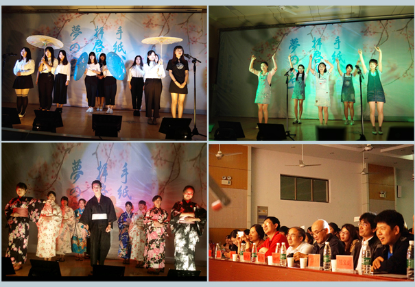 此次文化节开幕式活动丰富多彩,日语舞蹈、歌唱、朗诵、小品等各种节目,让大家耳目一新。其中小品《不差钱》充分体现了文化并无国界;和服秀《东瀛风情》则充分显示了日本的风土人情;日本歌曲、舞蹈更是甜美动人。