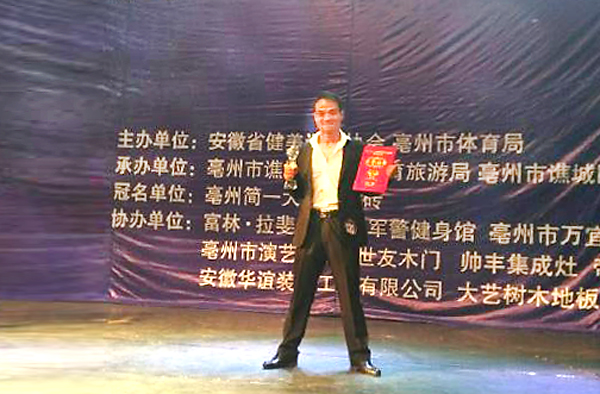 2016年5月6日-8日,2016年“简一杯”安徽省健身健美锦标赛暨全国健美锦标赛选拔赛在安徽亳州隆重举行,本次比赛是由安徽省健美运动协会、亳州市体育局主办,亳州市谯城区文化体育旅游局、亳州市谯城区健美协会承办的大型赛事,共吸引来自全省各地29支代表队近200名运动员参赛。