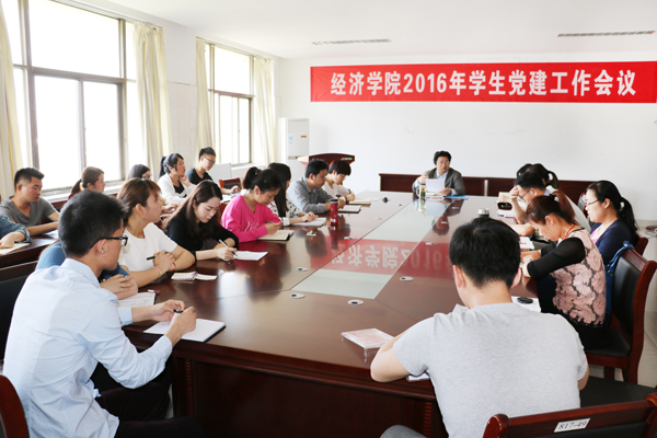 为进一步贯彻落实好“两学一做”学习教育工作, 5月4日下午,经济学院召开2016年学生党建工作会议。经济学院党委领导、党委委员、学生党支部书记、支部委员、各年级政治辅导员、各党小组组长参加了会议。王秀芹老师主持本次会议。