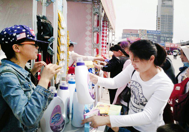 活动伊始,同学们在学院党委副书记谢其梅老师的带领下提前深入相应企业展开调研,并进行了周密的安排和部署。4月22日上午九点,由惠文桥带队的25名同学在思朗食品展台前,开始了一天的志愿者工作。室内的同学负责包装、收银、摆货、卖饼干,室外的同学负责是销售、宣传产品。由于快带领的21名同学,利用中午的休息时间,做问卷调查、与商家沟通交流。