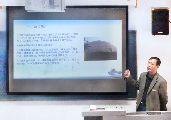4月22日下午,淮北百晟新农业科技有限公司总经理李奎群、项目经理刘波一行受邀来到学院,面向2012级生物工程、环境科学、园艺等专业开展招聘工作,李奎群详细介绍了公司目前的发展状况,应聘同学就相关问题进行了提问,沟通与交流深入、全面,部分同学表达了就业意向,并计划去公司实地考察。学院和该公司表示将保持长期合作,为教师科研、学生实践锻炼和就业搭建一个良好的平台。