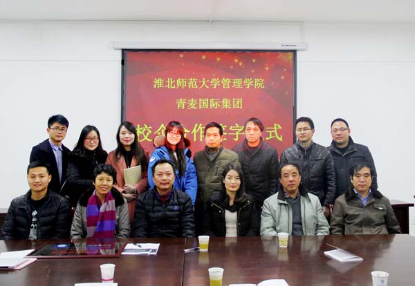朱学道对青麦集团的到来表示欢迎,指出淮北师范大学高度重视应用型人才的培养,加强校企合作是突破师范大学传统办学模式、提高应用型人才培养质量的有效途径。管理学院一直致力于应用型人才培养模式改革的探索,不断拓展办学空间,本次校企合作协议的签署将为管理学院应用型人才培养改革提供新的阵地,为提高管理类专业大学生就业层次打下基础。朱学道希望双方能发挥各自优势,进行多方位、深层次合作,实现企业、学校及学生的多方共羸。