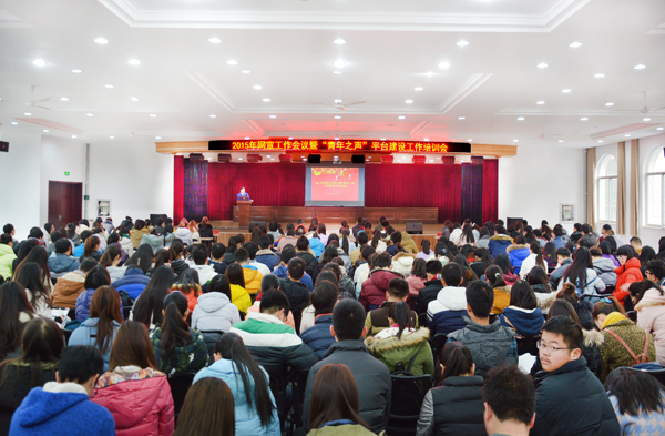 12月20日上午,学校2015年网宣工作会议暨“青年之声”平台建设培训会在大学生活动中心成功举办。校团委全体成员、校学生会、学生社团联合会负责人、各学院团委书记、学生会负责人、各社团负责人以及全校各班级团支部书记共400余人参加了培训会。