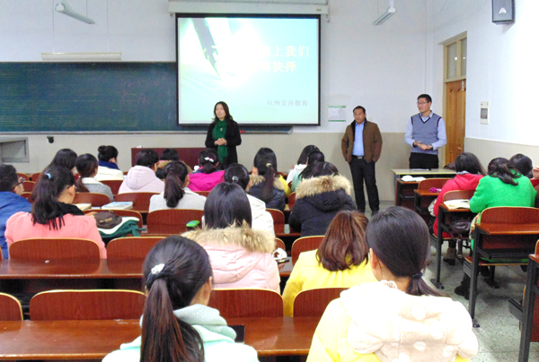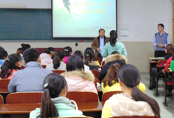 2015年12月2日下午,化学与材料科学学院在文南105举行了一场以“就业路上我们该如何抉择”为题目的就业指导讲座,主讲人为杭州文舟教育的创办人、校长戚传金和副校长吴银响,学院党委书记李琴主持讲座。