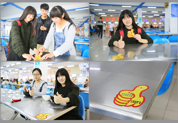 大拇指标进食堂,为校园文明点赞