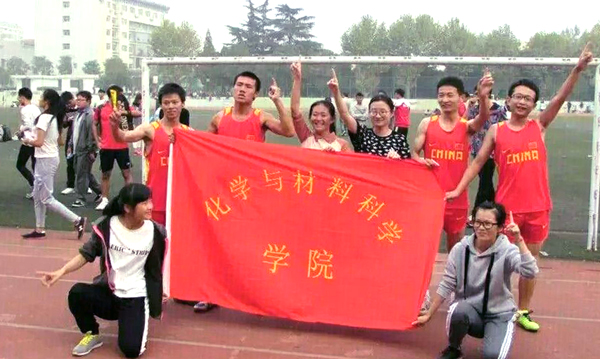 本次运动会中,化学与材料科学学院报名参加的比赛项目多达28个,场上服务人员、拉拉队等近600人。这对于化材学院可谓是“积极动员,人人运动”。在两天的比赛中,化材学院奋力拼搏、表现出色,最终有8个个人项目,2个团体项目得了第1名的好成绩,其中男子4×400接力赛和男子标枪创造新的历史记录。