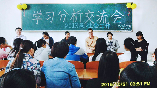 本学期以来,历史与社会学院分别举办了13酒管专业和13社工专业学生学习分析会。学习分析会以班级为单位,由班委会负责组织召开,本学期专业课任课教师、辅导员和全班同学分别参加了会议。
